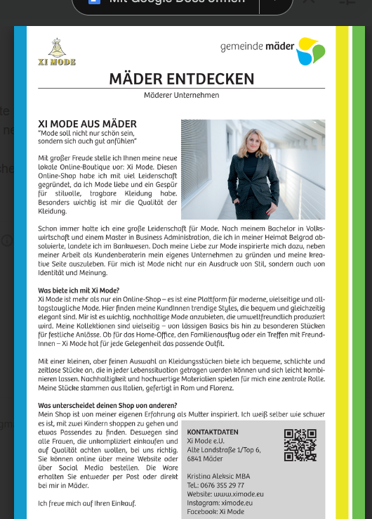 Herzlich willkommen bei Xi Mode! Schön, dass du da bist! Ich bin Kristina Aleksic, eine junge Mama mit einer großen Leidenschaft für Mode – und genau diese Leidenschaft steckt in jedem einzelnen Teil in unserem Shop. Mit Xi Mode möchte ich euch eine kleine, aber feine Auswahl an Kleidung bieten, die modern, vielseitig und dabei super tragbar ist. Hier findest du angesagte Styles, die sich perfekt in den Alltag integrieren lassen, ohne dabei an Qualität oder Stil zu sparen.