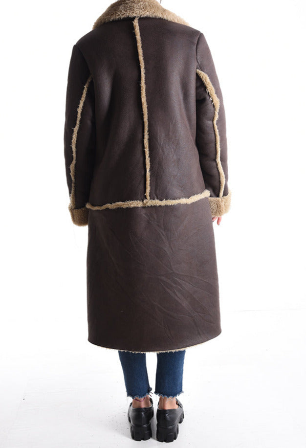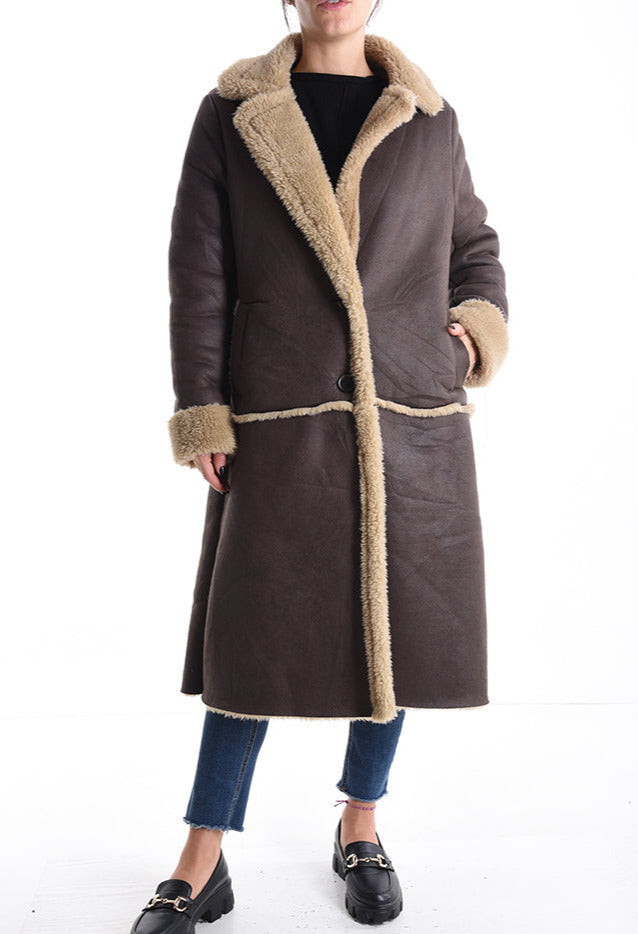 Kunstleder Kunstfell Mantel mit Knöpfen mit Taschen